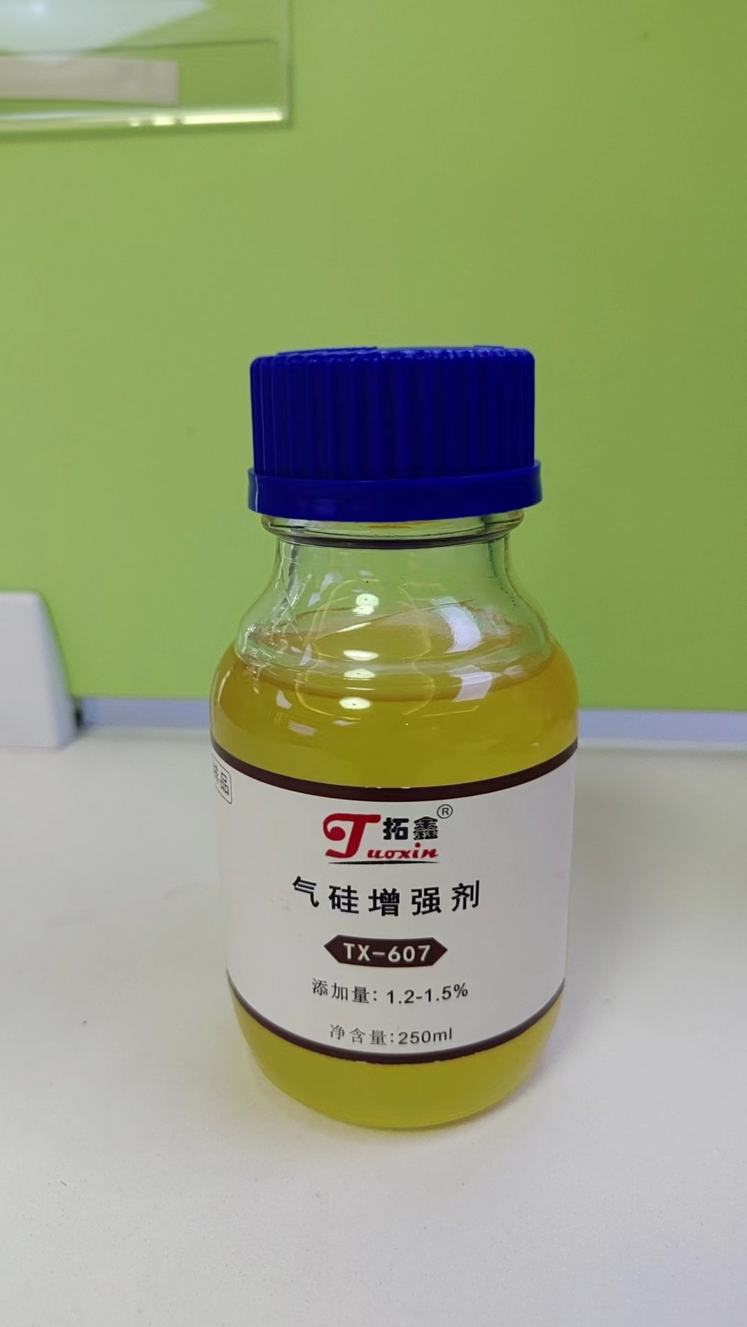 本产品是一种提高亲水型气相二氧化硅或膨润土触变性能的触变加强剂。它增强了触变的网络结构,确保在加入胺类固化剂后,触变网络不会断裂。TX-607 能够使亲水型气相二氧化硅或膨润土在双组分的环氧中单独使用。当使用TX-607后,不必通过在树脂体系中加入疏水型的气相二氧化硅,在固化剂中加入亲水型的气相二氧化硅这种方法来获得较厚的膜。该添加剂应加入到固化剂中。通过在TX-607 和触变剂间所形成的氢键,达到粘度的自然增长。