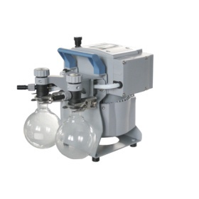 该化学真空系统在化学、生物和制药等实验室应用广泛,主要用于不需要在出气口收集溶剂蒸汽冷凝液的气体或蒸汽的抽取、蒸发等过程。典型的应用有连接真空浓缩仪、干胶机和抽滤设备。进气口的分离瓶为玻璃材质,外覆保护膜,防止颗粒和液滴进入泵内。出气口的分离瓶用于收集冷凝液,防止冷凝液倒流回泵内,并使泵在运行时更加安静。性能特性