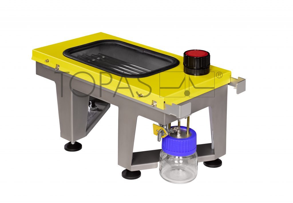 根据标准ISO 16890-4中的测试要求,被测滤料或过滤器应经过IPA处理。为进一步评价被测过滤材料或过滤器的性能,满足标准的测试要求,德国TOPAS设计并研发出TDC-585,尤其适合小型滤料或过滤器的处理。设备基于TDC-584的基础上研发而成,TDC-584可对大型过滤器进行IPA静电消除处理。这样也能消除试验过程中的安全隐患,此外,TDC-585需置于ATEX通风柜下。