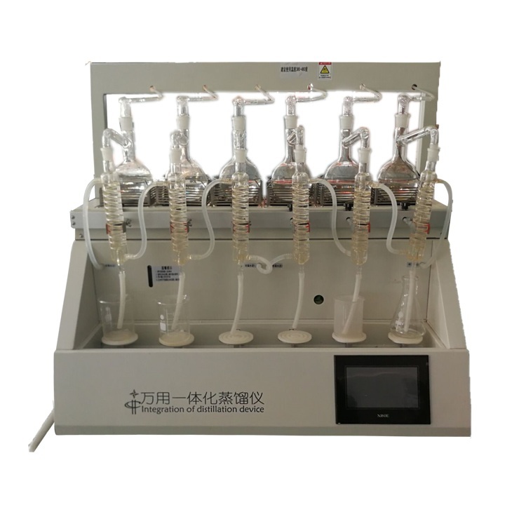 一体化蒸馏仪是根据实验室蒸馏预处理操作规程,集恒温加热、蒸馏终点自动控制、冷却水循环于一体的新型智能蒸馏处理装置。