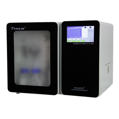 泰林生物TOC总有机碳分析仪采用1000℃催化燃烧氧化法,将试样连同净化气体(高纯氧)分别导入高温燃烧管和低温反应管中,经高温燃烧管的试样被高温催化氧化,其中的有机碳和无机碳均转化为二氧化碳,经低温反应管的试样被酸化后,其中的无机碳分解成二氧化碳,两种反应管中生产的二氧化碳经载气输送依次被导入非分散红外气体检测器NDIR中, CO2被检测。从而分别测得水中的总碳(TC)和无机碳(IC)。总碳与无机碳之差值,即为总有机碳(TOC)。即:TOC=TC- IC