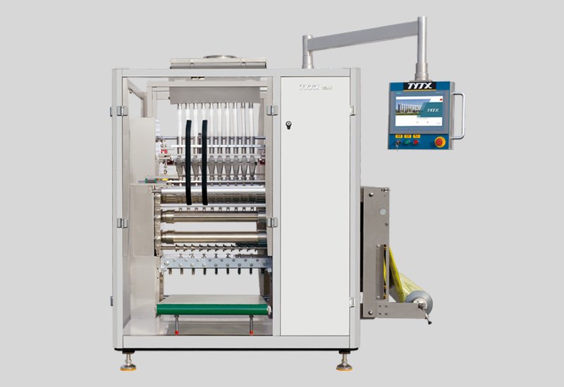 人机界面上触摸调整,通过PLC控制,使各执行机构精确自动同步定位; 调整快捷方便,包装速度快、灌装计量准确; 采用光电跟踪系统,保证了包装袋双面图案自动对版,并具有自动计数功能; 增设行膜自动纠偏与行膜阻尼机构,保证行膜的直线度与张紧度,提高了袋形的平整与美观程度。