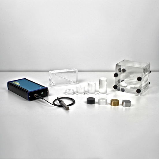 EchoSet包含各种测试对象和用于简单测试的样品,例如:飞行时间测量(A-scan),声速测定,由几个单一的A-scan生成一个B模式的图像,以及由一系列的B-scan生成超声波三维图像。