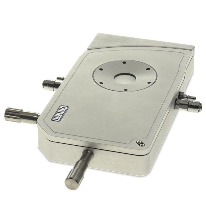 样品放置在载物片上,载物片直接放置在抛光的加热元件上且可以进行15mm的X、Y方向移动。样品腔室是气密的,气体阀可以控制腔室内的环境,即惰性气体或湿度。为了减小样品上的温度梯度,加热台上的光孔只有2.5mm。冷热台温度由独立的温度控制器进行控制,速率设定从0.1到50°C/min。