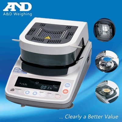 日本A&D以全新的设计理念、精湛的工艺技术制造出高精度mx-50快速水份测定仪,它操作简单,易于观察并以其**的性能充分应用于食品、烟草、制药、石油、造纸、饲料、化工、涂料、矿产、环保、地质等行业做物料含水率的快速测定,同时满足固体、颗粒、粉末、胶状体及液体含水率的测定要求