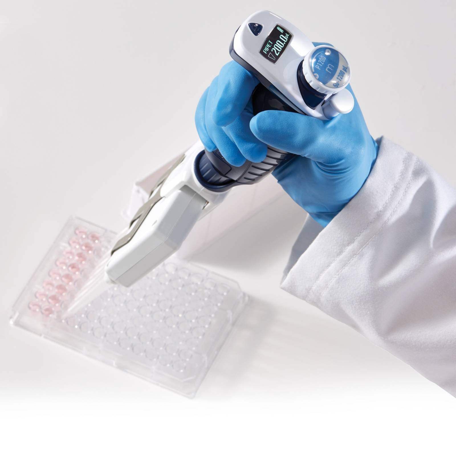 PIPETMAN® M电动多道移液器,轻松易用,既保持了PM型电动移液器的操作舒适、准确耐用等优势,又结合轻巧版P型多道移液器下半部分可靠的多道机械装置
