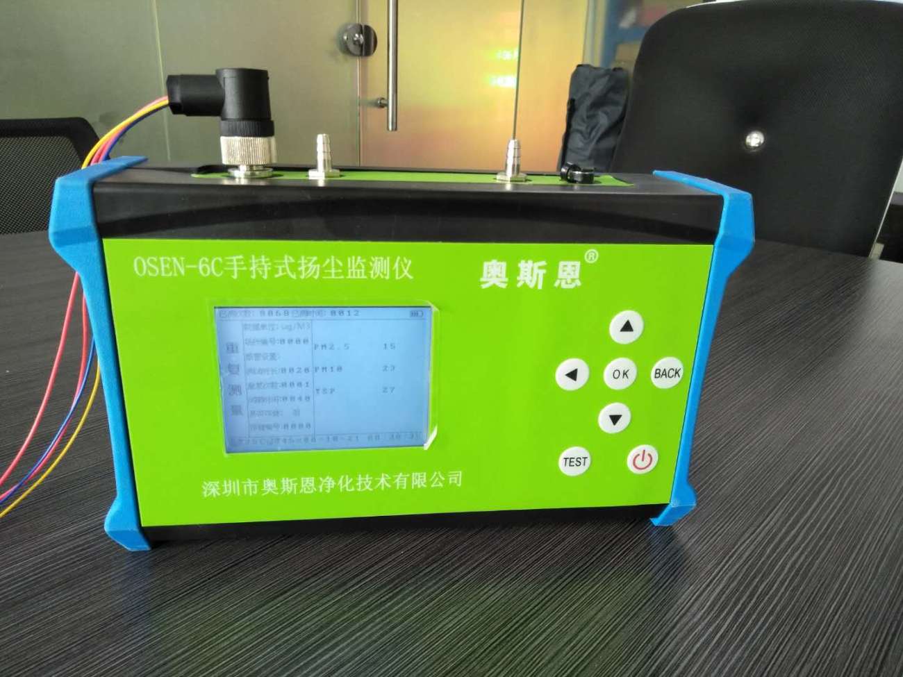 奥斯恩自主研发的光散射原理的OSEN-6C手持式扬尘监测仪利用先进激光技术、不需物理切割头、PM2.5/PM10/TSP可同时输出、免维护、产品可靠性高。