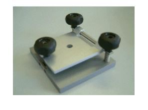 该夹紧件包括一个第二夹紧件的基板,该第二夹紧件由弹簧负载螺旋支撑。两道菜在它们的中心都有10毫米的洞。一种制作样品被定位在盘子之间,因此其中一部分被暴露。本发明允许从样品中完全穿透和远距离穿透,穿过平板上的孔,避免样品滑动或移动。
