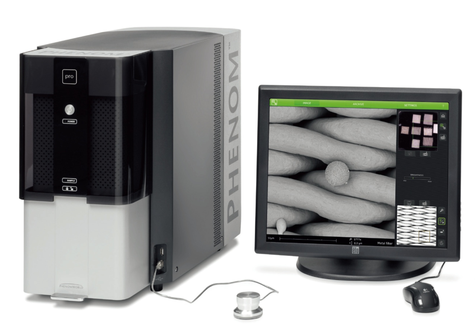 Phenom Pro 放大倍数100,000倍,分辨率优于17nm,30秒快速得到表面细节丰富的优质显微像。是一款功能齐全的高分辨率台式扫描电镜,可用于测量亚微米或纳米尺寸的样品。Phenom Pro可选配丰富的拓展功能选件Phenom Pro Suite,如三维粗糙度重建、纤维直径和孔洞面积(孔隙率)统计分布、高倍拼图、远程控制操作等。