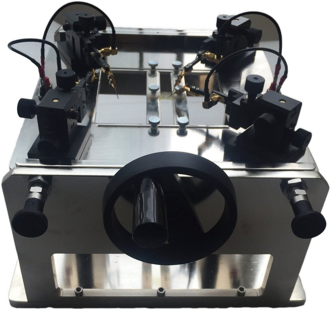 *适用样品:OPV有机太阳能电池和PVK钙钛矿太阳能电池; *适用条件:电极端在电池的同一面,且电极端位置可随意; *三维微动四探针支架 *进口镀金探针 *电池基片尺寸可任意大小(使用者需告知**尺寸),电极可任意。 *夹具可180°旋转,翻转自如。 *测试探针座底座采用高强度磁铁,吸力强,当夹具旋转180°后不会错位,定位精度高。采用高精度定位手轮,确保夹具旋转180°后水平精度高(平面度高); |
