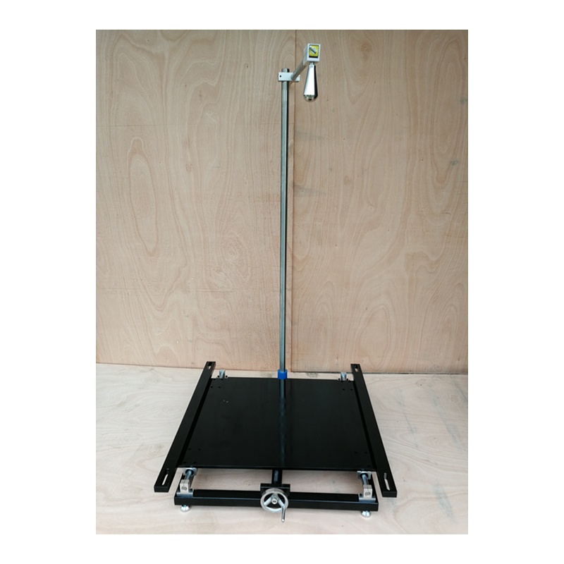 落锤式冲击试验机结构: 试验机应保证固定祥品的平台能前后滑动调整, 茄形锤上下高度可调,并能自由释放。支座为宽50mm的两根钢平面支座,长度略大于波瓦的宽度,其上垫厚度为10mm的木条,支座上有固定样品的夹紧装置。