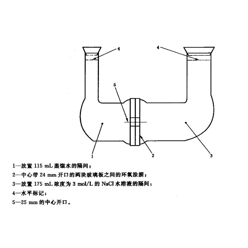 为3mol/L的NaC水溶液,小隔间注入115mL蒸馏水。在23℃±2℃的温度下试验45d后,测量小