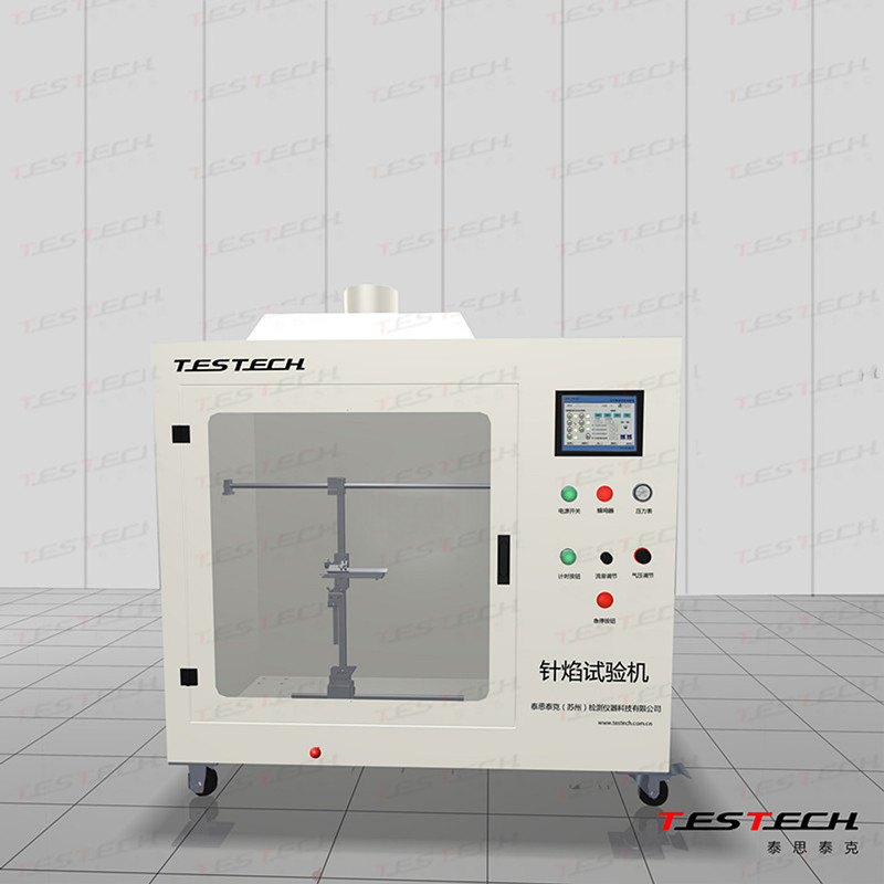 针焰试验仪是用规定尺寸(Φ0.9mm )的针状燃烧器,通以特定燃气(丁烷),以 45°角定时定向施燃试品,视试品是否引燃及持燃时间和燃烧长度来评定设备内部因故障条件造成的小火焰的着火危险性。