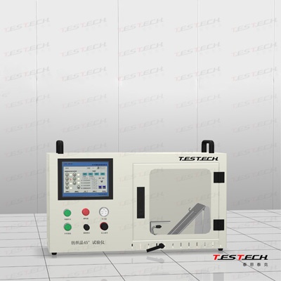 该测试器适用于纺织织物在45°状态下,将试样斜放呈45。角,对试样点火1s,将试样有焰向上燃烧一定距离所需的时间,作为评定该纺织品燃烧剧烈程度的量度。