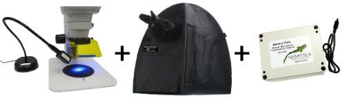 有了强劲的电池和方便的暗室罩,无论何时,无论何地,潇洒闯九州!NIGHTSEA团队曾经携带显微镜系统、荧光适配系统、电池、暗室罩在海滨的中午,沙漠的正午,清晰的荧光给大家留下了深刻的记忆。