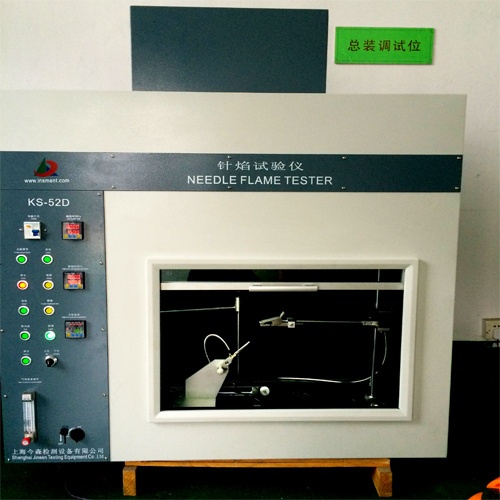 KS-52D针焰试验仪是用规定尺寸((Φ0.9mm ) 的针状燃烧器,通以特定燃气 ( 丁烷或丙烷 ) ,以 45° 角定时定向施燃试品,视试品及引燃铺垫层是否引燃及持燃时间和燃烧长度来评定设备内部因故障条件造成的小火焰的着火危险性。