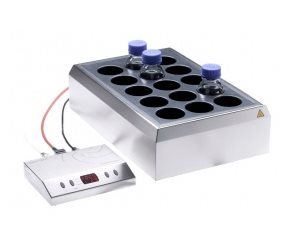 1、15 位的搅拌加热块组合,15 孔,直径57.5 mm,深度 48 mm,孔距65 mm,适合100 ml 实验室用烧瓶 ( 例如Schott) 和150 ml 玻璃烧瓶