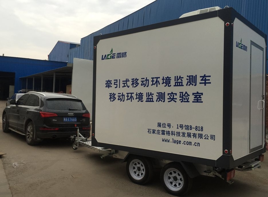 移动环境监测实验室采用拖挂方式,即牵引车+拖车底盘+箱体的方式进行牵引。