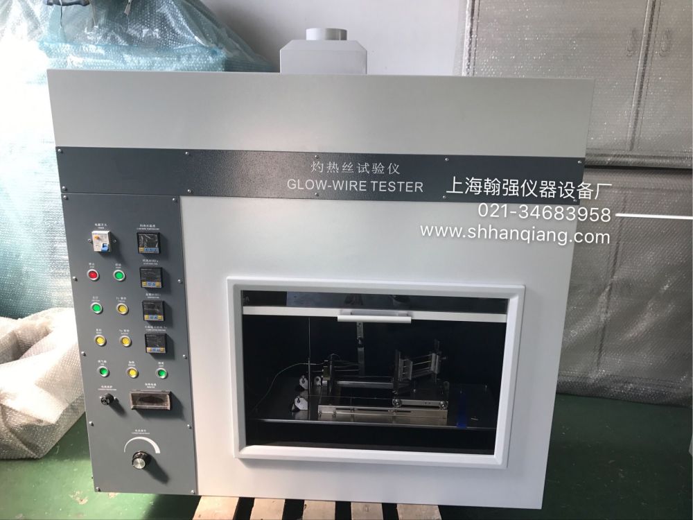 灼热丝试验箱将规定材质 (Φ4 Ni> 77 %/Cr20± 1 %) 和形状的电热丝用大电流加热至试验温度 ( 500 ℃ ~ 1000 ℃ )1min(温度变化不超过5k) 后,以规定压力 (0.95 +/- 0.1 N) 垂直灼烫试品 30s ,视试品和铺垫物是否起燃或持燃时间来测定电工电子设备成品的着火危险性;测定固体绝缘材料及其它固体可燃材料的起燃性、起燃温度 (GW