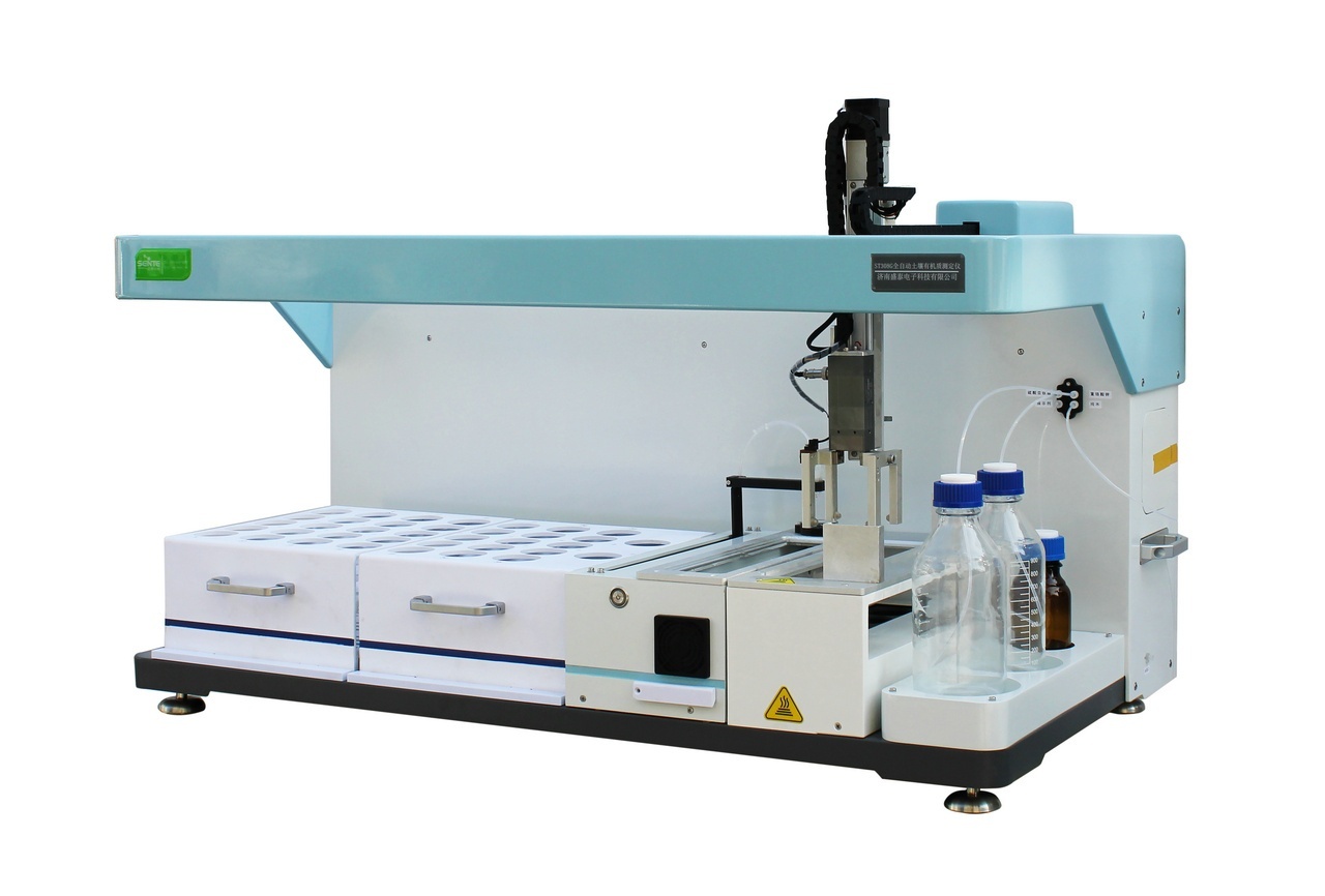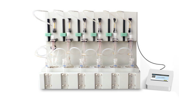 该仪器利用联通的转子流量计控制氮气流速,实现*多六通道气体流量控制;垂直加酸、氮气吹脱、酸化吸收等一体化设计;采用外置式平板电脑遥控操作;PID加热控温程序;恒温水浴加热;智能进出水等程序实现了对水质硫化物测定的智能预处理。适用于环保、科研、水文等单位的地表水、地下水、生活污水和工业废水中的硫化物进行酸化-吹气-吸收的前处理的理想设备。