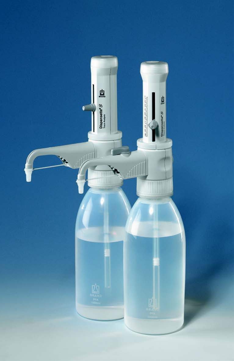 Dispensette® S Trace Analysis 能够出色地完成精确移取痕量分析中使用的高纯度试剂的工作。配用铂-铱合金阀门弹簧的型号,也适用于氢氟酸。