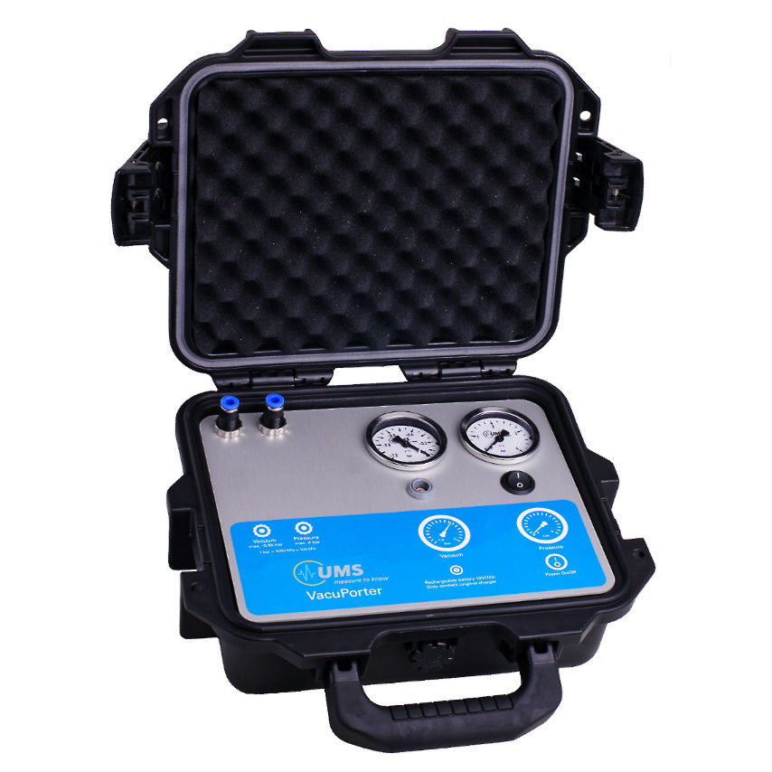 将采样瓶抽空至大约50 kPa。当土壤水分张力低于50kPa时,土壤水溶液将被提取,直至采样瓶和土壤水分张力均衡。这款便携式真空泵具可充电电池,可以轻松收集孔隙水样。