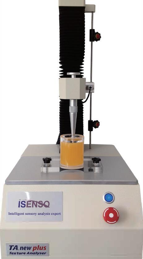 质构仪也叫物性测试仪,它可以精确的测试食品样品的感官特性,如硬度(Hardness) 、酥脆性(Fracture)、弹性(Springiness)、咀嚼度(Chewiness)、坚实度(Firmness)、韧性(Toughness)、纤维强度(Fibrousness)、粘着性(Gumminess)、胶着性(Stickiness/Tackiness)、粘聚性(Cohesiveness)、屈服点(Yield)、延展性(extension)、回复性(Resilience)、凝胶强度等。仪器的稳定性强,应用范围广、精确度高、操作简便,深受高校、科研机构和食品企业的广泛认可。