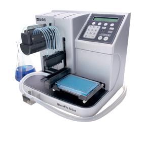MicroFlo™ Select内置的预喷槽可帮助液体回流,或在自动化平台上可直接将预喷完的液体倾倒到废液收集瓶中。针对高通量的客户,MicroFlo™ Select还可整合BioStack™微孔板储板器或者BioStack Twister™ II微孔板处理系统实现无人操作。而且它还可通过. NET的软件界面链接到第三方的自动化平台中。仪器还可同时由独立的分装管道分8种试剂。另外针对习惯通过电脑操作机器的客户,BioTek也提供了Liquid Handling Control™的PC软件。