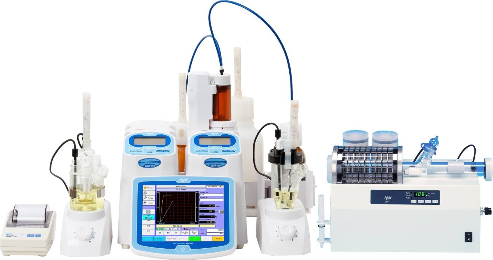 7. 通过与MCU-710连接,进行库仑法和容量法水分仪同时测定。