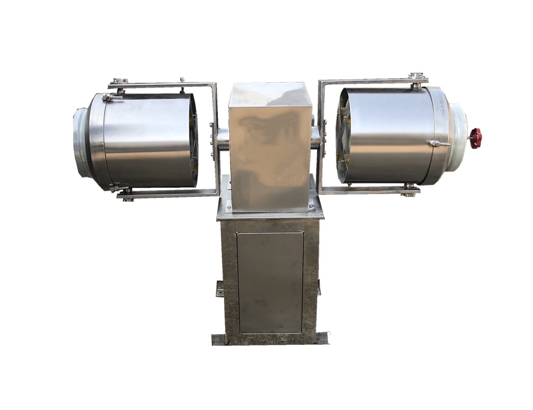 转架安装在蜗轮减速箱的输出轴上。电动机传动蜗轮减速机构,带动转架匀速转动,从而使缸体旋转。