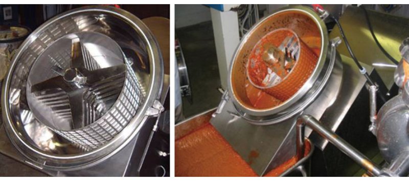 原料从上部进料,而产品从底部排出和收集。转子设置成45度角,由于底部驱动结构,进料口采用开放式结构。上壳、筛网采用卡箍固定,锤头结构简单,安装拆卸方便。通过卸下这些部件并打开粉碎室,粉碎室四周配有自动高压清洗系统,可以轻松清洗机器。粉碎室的角度为45度角,使其成为粉碎和打浆苹果、西红柿等蔬菜和整个水果的食品应用的**机器。它具有易于清洁的结构,可轻松更换原材料。