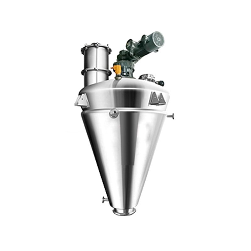 锥形混合机适用于粉料与粉料、颗粒与粉料、粉料与少量液体的混合,广泛应用于化工、染料、颜料、农药、兽药、医药、塑料及助剂等行业。该机对混合物适应性广,对热敏性物料不会产生过热,对颗粒物料能尽量保持颗粒的完整,对粗粉、细粉、纤维或片状物料的混合都有很好的适应性。本机还可以根据用户的要求制作加热、冷却、正压、真空等各种特殊形式。