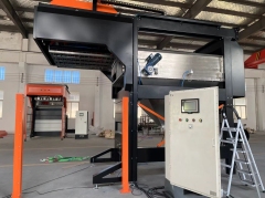 适用于各种袋装物料的拆袋卸料作业,相对人工拆袋投料,具有无粉尘泄露,减少劳动力,提高效率,减少原料浪费,安全便利的优势。它通过皮带机自动给袋,割刀装置进行破袋,滚筒筛实现袋料分离、卸料等步骤,物料靠重力落进贮斗中,并通过过滤箱筛除割袋过程中所产生的编织丝,来完成拆袋卸料工作,废袋通过废袋收集机构完成废袋的自动收集。