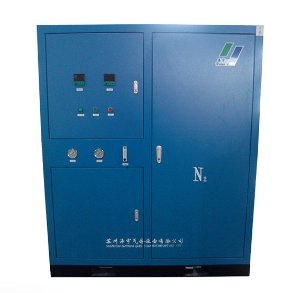 在压力作用下,两种或两种以上的气体混合物通过高分子纤维膜时,由于各种气体在膜中的溶解度和扩散系数的差异,导致不同气体在膜壁相对渗透速率有所不同。根据这一特性,我们称渗透速率大的气体为“快气”, 渗透速率小的气体为“慢气”。当混合气体在驱动力—膜分离器两侧压差的作用下,“快气”如水、氧、二氧化碳等透过膜壁后再膜渗透侧被富集,“慢气”如氮气、一氧化碳、氩气等则在滞留侧被富集,从而达到混合气体分离的目的。当以加压净化空气为气源时,氮气等惰性气体被富集成高纯度供生产应用,由渗透侧排空的为富氧气体。在氮膜系统的渗透侧可得到富氧气体,富氧浓度在30-40%,如需利用其富氧空气,可向本公司咨询。