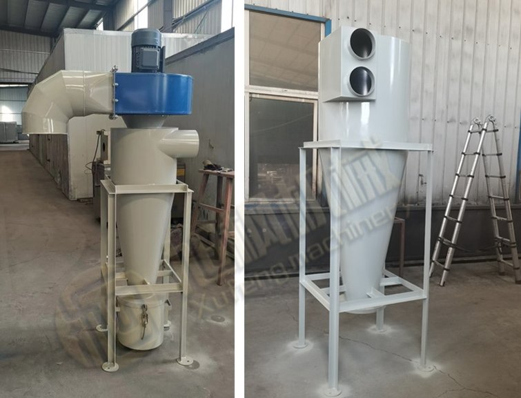 当粉尘由离心风机抽入旋风除尘器内,会沿壁由上而下做旋转运动。而粉尘颗粒也因此会受离心力的作用从气流中分离出来,再受重力作用沿壁落入灰斗,接着气体便会沿着排出管旋转向上从排出管排出。旋风除尘器主要是由锥形低的外圆筒、排气管、进气管、圆锥简、贮灰箱以及除尘卸灰阀等部件构造而成。