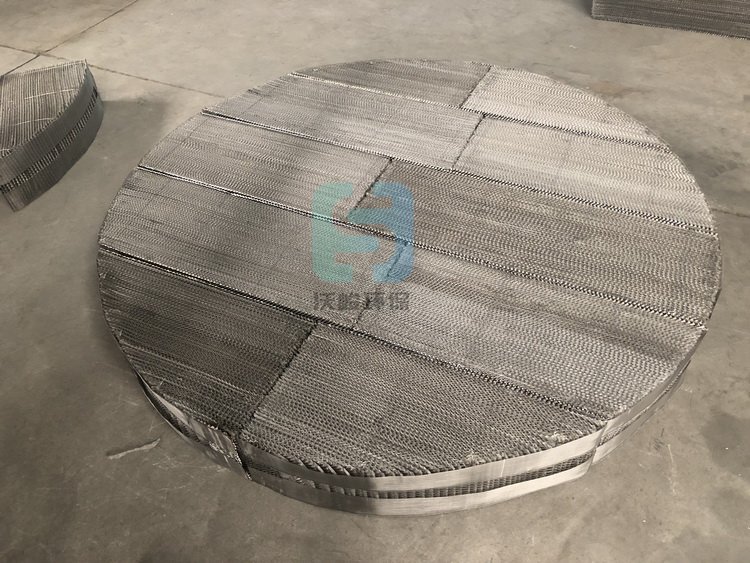 丝网波纹填料是由垂直排列的波纹丝网条片组成的盘状规整填料,其比表面积数值对传质性能有着决定性的影响,依比表面积的不同,丝网波纹填料可分为250㎡/m³.350㎡/m³、 500㎡/m³、 700㎡/m³型等。因丝网细密,故其空隙率较高,填料层压降低:由于丝网**的毛细作用使液体容易在填料表面呈膜状分布,且液膜薄,持液量因此具有突出的润湿性能,分离效率高。