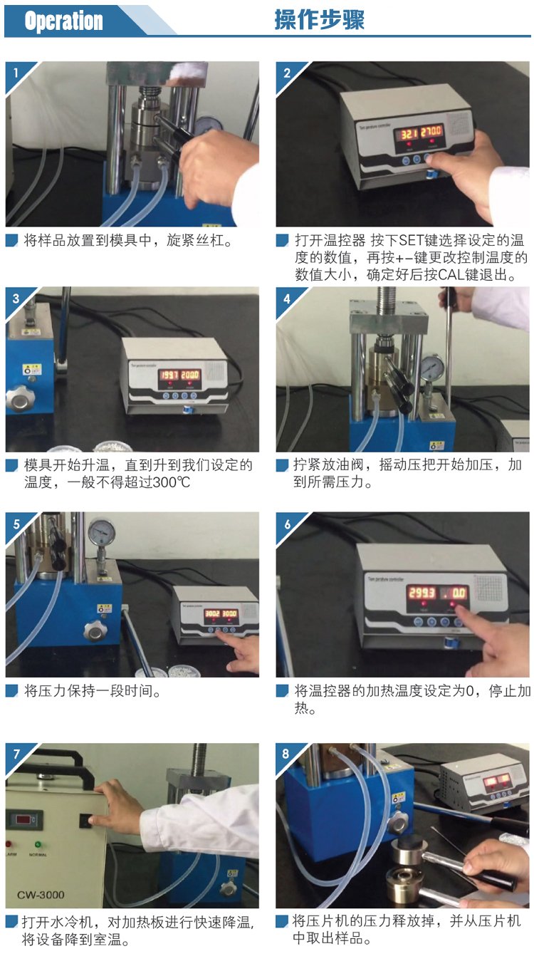 RYJ-600B型 单平板热压压片机,300℃,手动24吨的使用方法?