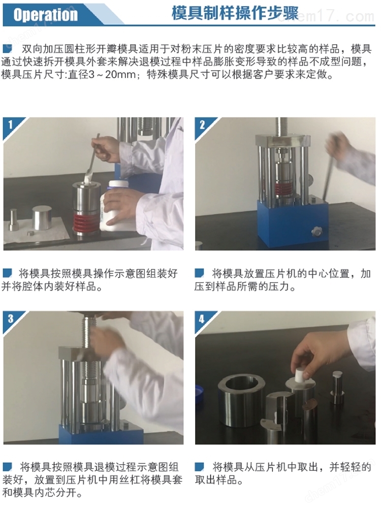 双向加压粉末成型模具Ф3-Ф20mm(可定做开瓣)的使用方法?