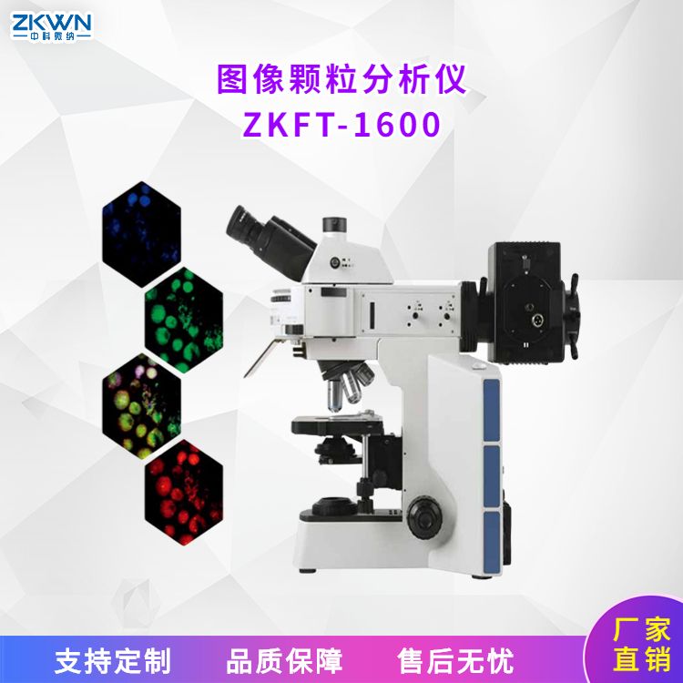 ZKFT-1600图像颗粒分析仪包括光学显微镜、数字CCD摄像头、图像处理与分析软件、电脑、打印机等部分组成。