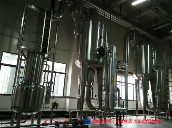 在双效生产时利用(真空度0.04Mpa,药液温度80多度)一效的二次蒸汽供应二效浓缩加热(真空度0.08Mpa,药液温度60多度),可根据要求在生产大比重浸膏时:一效生产浸膏比重在1.2左右时并罐于二效组合式浓缩继续浓缩可达到1.4左右时出膏,在生产过程中采用它充分达到节能的作用。在单效单台生产时利用单效生产时间短、速度快、操作简便的优势,在有效利用能源(提取液温度在90度左右时浓缩真空度在-0.08Mpa时沸点温度为60度采用单效为**)充分发挥单效的优势可缓解生产急需。利用冷凝冷却器的面积大可以进行单效或组合式浓缩的单台生产,在两台分别同时生产是单效的生产,如若回收溶媒可通过真空保护系统中的板式缓冲罐进行操作。