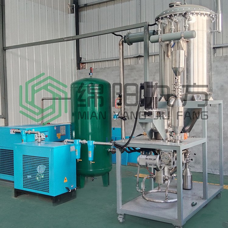 气流粉碎机拥有适用领域广、成品细度高、分级精度高等特点,与空气压缩机、冷干机、旋风收集器、除尘器、引风机、控制柜等组成一整套完整的气流粉碎系统。