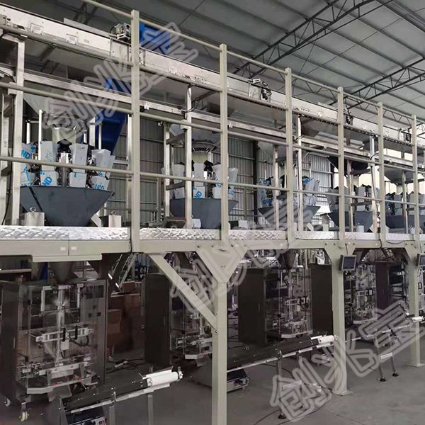 集中供料—分料—称重—打印日期—包装封口—成品集中输送——全自动开箱—封箱—捆扎—码垛
