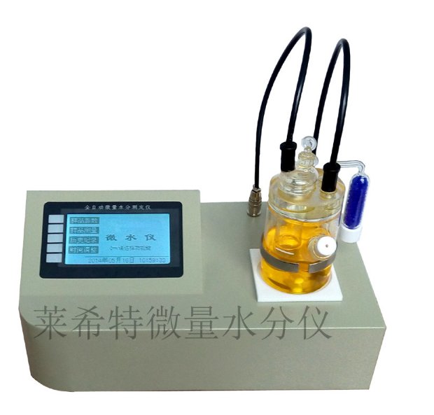 LXT-610WL微量水分测定仪精度高,重复性好,能形成完整的闭环验证文件,是实验室水分测量的理想**仪器。微量水分测定仪的原理是基于卡尔费休化学反应的一种电化学方法。其原理是仪器的电解池中的卡氏试剂达到平衡时注入含水的样品,水参与碘、二氧化硫的氧化还原反应,在吡啶和甲醇存在的情况下,生成氢碘酸吡啶和甲基硫酸吡啶,消耗了的碘在阳极电解产生,从而使氧化还原反应不断进行,直至水分全部耗尽为止。卡氏库仑法水分测定仪采用液晶汉字提示操作,微处理器自动处理,测量自动化,摆脱了繁琐的按键及手动调试步骤。全金属外壳喷塑处理,与铝壳、塑料壳和喷漆相比,结实耐用,抗干扰性能好。