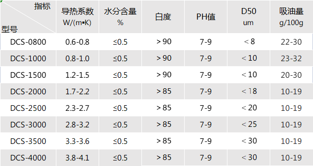 Ⅲ、有机硅灌封胶专用粉体DCS系列主要性能指标