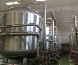 含有悬浮物颗粒的水在管道混合器中与絮凝剂、碱充分混合,使水中形成胶体颗粒的双垫层被压缩。当胶体颗粒流过多介质过滤器的滤料层时,滤料缝隙对悬浮物起筛滤作用使悬浮物易于吸附在滤料表面。当在滤料表层截留了一定量的污物形成滤膜,随时间推移过滤器的前后压差将会很快升高,直至失效。此时需要利用逆向水流反洗滤料,使过滤器内石英砂及无烟煤层悬浮松动,从而使粘附于石英砂及无烟煤表面的截留物剥离并被水流带走,恢复过滤功能。使用的双层滤料是在过滤层上部放置较轻的大颗粒无烟煤,下部为大比重的小颗粒石英砂,这样可以充分发挥整个滤层的效率、提高截污能力。