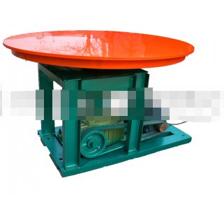 散状物料从料斗装入受料筒中,物料没受料筒壁借本身自重堆积在圆盘上,用调节螺栓调整套筒与圆盘之间的间隙,可以控制物料在圆盘上的自然堆角。圆盘转动时,物料被圆盘上的卸料刀均匀地刮到圆盘外下落,这样随着圆盘转动,物料便由卸料刀均匀刮入接料斗中。圆盘连续运转,就完成了均匀的给料操作。调整卸料刀与圆盘之间的间隙,也可以控制给料量的多少。工作时,电动机通过皮带轮带动装在蜗杆减速器上的圆盘转动。
