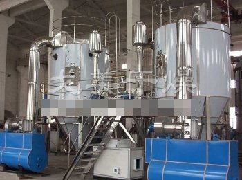 空气经过滤和加热,进入干燥器顶部空气分配器,热空气呈螺旋状均匀地进入干燥室。料液经塔体顶部的高速离心雾化器,(旋转)喷雾成极细微的雾状液珠,与热空气并流接触在极短的时间内可干燥为成品。成品连续地由干燥塔底部和旋风分离器中输出,废气由风机排空。