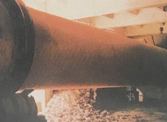 由回转窑卸出的炽热熟料经过下料溜子从高端喂入冷却机。