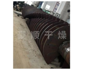 5、物料适应性广,产品干燥均匀。干燥器内设溢流堰,可根据物料性质和干燥条件,调节干燥器内物料滞留量。可使干燥器内物料滞留量达筒体容积的70%—80%,增加物料的停留时间,以适应难干燥物料和高水分物料的干燥要求。此外,还可调节加料速度、轴的转速和热载体温度等,在几分钟与几小时之间任意选定物料停留时间。因此对于易干燥和不易干燥物料均适用。湿含量只有0.1%,已有工业应用实例。另外,干燥器内虽有许多搅拌桨叶,物料混合均匀,但是,物料在干燥器内从加料口向出料口流动基本呈活塞流流动,停留时间分布窄,产品干燥均匀。