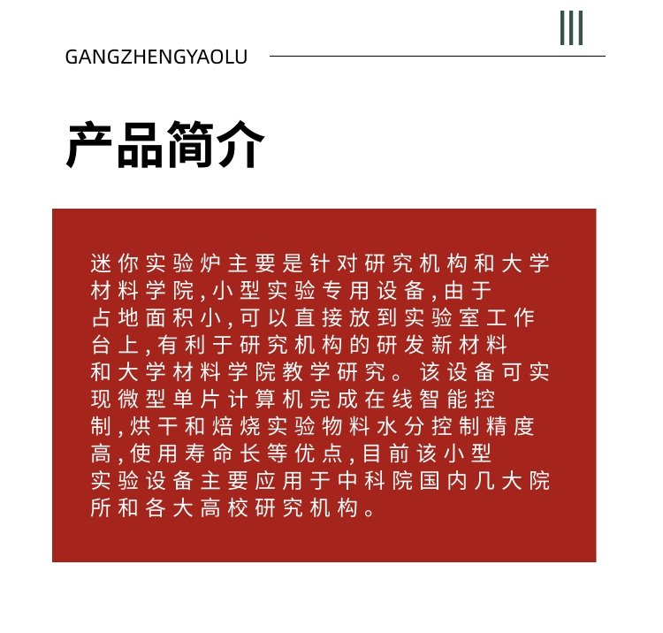 GZ - 迷你实验炉凭借高精度控温、动态煅烧、模块化定制等特点,成为高校、科研机构及中小企业实验室的优选设备。其性价比优势和成熟的应用案例,尤其适合预算有限但对设备性能有较高要求的场景。